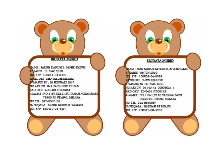 Moshims Contoh Kad Nama Murid Prasekolah Otosection
